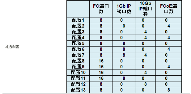 配置四:4个FC端口+4个1Gb IP+2个10Gb IP;
